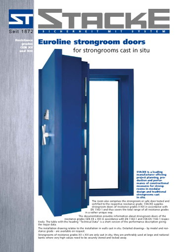 The strongroom always comprises the strongroom door or safe door tested and certified in conformance with the respective resistance grade. STACKE is a supplier of strongroom doors in the resistance grades II – XIII in accordance with EN 1143-1 and thus covers the total range of all relevant resistance grades in a unique way.